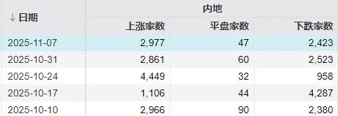 全周上涨个股较 10 月底小幅回升,但大体仍是涨跌参半。